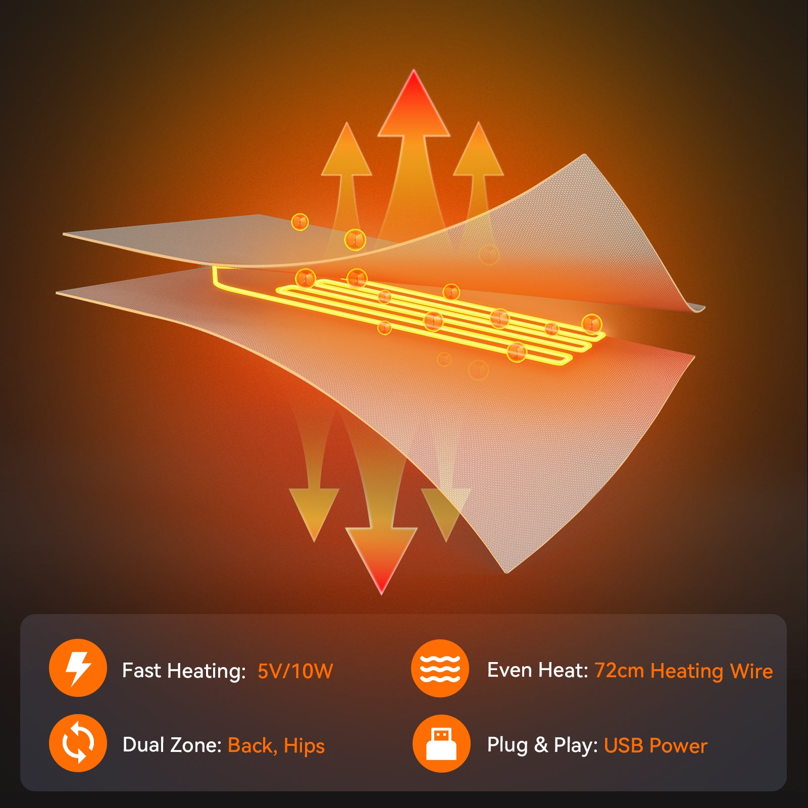 - 【Dual-Zone Heating】The heated camping chair features four heating zones and two independent heating control systems, allowing you to adjust the temperature of each seat independently, keeping you warm even in the coldest winter. The heated chair is USB-powered and compatible with power banks with a capacity of 10,000 mAh or higher (output: 5V/2A, batteries not included). Two power banks are required.